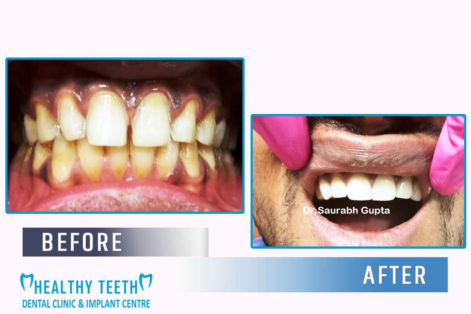 Full Mouth Reconstruction of multiple missing, carious and severely attrited and damaged teeth with Extraction, Root Canal Treatment, and full mouth Zirconia Crowns and Bridges (All ceramic crowns and bridges).